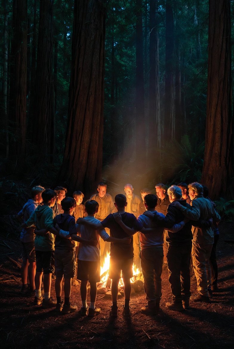 Modern society has largely lost the structured initiations that once guided boys into responsible manhood, leaving many young men feeling untested, unblessed, and without clear purpose. Fire Keepers restores this essential process through respectful, age-appropriate rituals held under starlit skies amid towering redwoods, spaces where boys are seen, challenged with love, and affirmed by elders from diverse backgrounds.